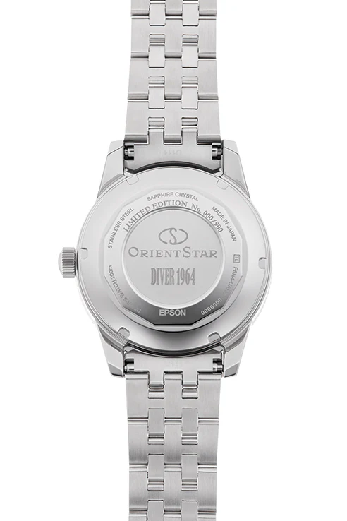 This new Diver 1964 2nd edition is based on the Calendar Auto Orient, one of the company’s first divers’ watches released in 1964. The Calendar Auto Orient featured simple dot indices on a mirror black finished dial, hands designed for excellent visibility, a rotating bezel incorporating an anodized aluminum ring, and sharply defined lugs. While the new Diver 1964 2nd edition reflects the designs inherited from the original model, a screw case-back, a dual curved sapphire crystal with anti-reflective coating, and water resistance to 200 metres compliant with the ISO 6425 standard for air diving watches. It also features the in-house 46-F6 series caliber F6N47 automatic movement, which provides high accuracy and a power reserve of over 50 hours. This version is is a white dial with a matching matte bezel surface. The gradation on the dial is inspired by the Ryusendo Cave in Iwate Prefecture, Japan, thought by some to be the most beautiful and mysterious limestone cavern in the world. This model reflects the spirit of the divers who dive deep into the underground lakes to survey the cave and unlock its mysteries. The case is made of high-quality stainless steel (SUS316L) and its relatively compact 41-mm diameter makes it ideal for everyday use. The five-piece link metal strap is made of the same SUS316L stainless steel, providing an unmistakable presence on the wrist as well as a comfortable fit. A divers’ extension structure and the trifold deployment buckle with push button and security latch are included, making the watch practical to use when playing sports or walking around town. The pyramid-like ridges of the additional silicon strap echo the design of the metal band of the original Calendar Auto Orient, providing a different look to enjoy.